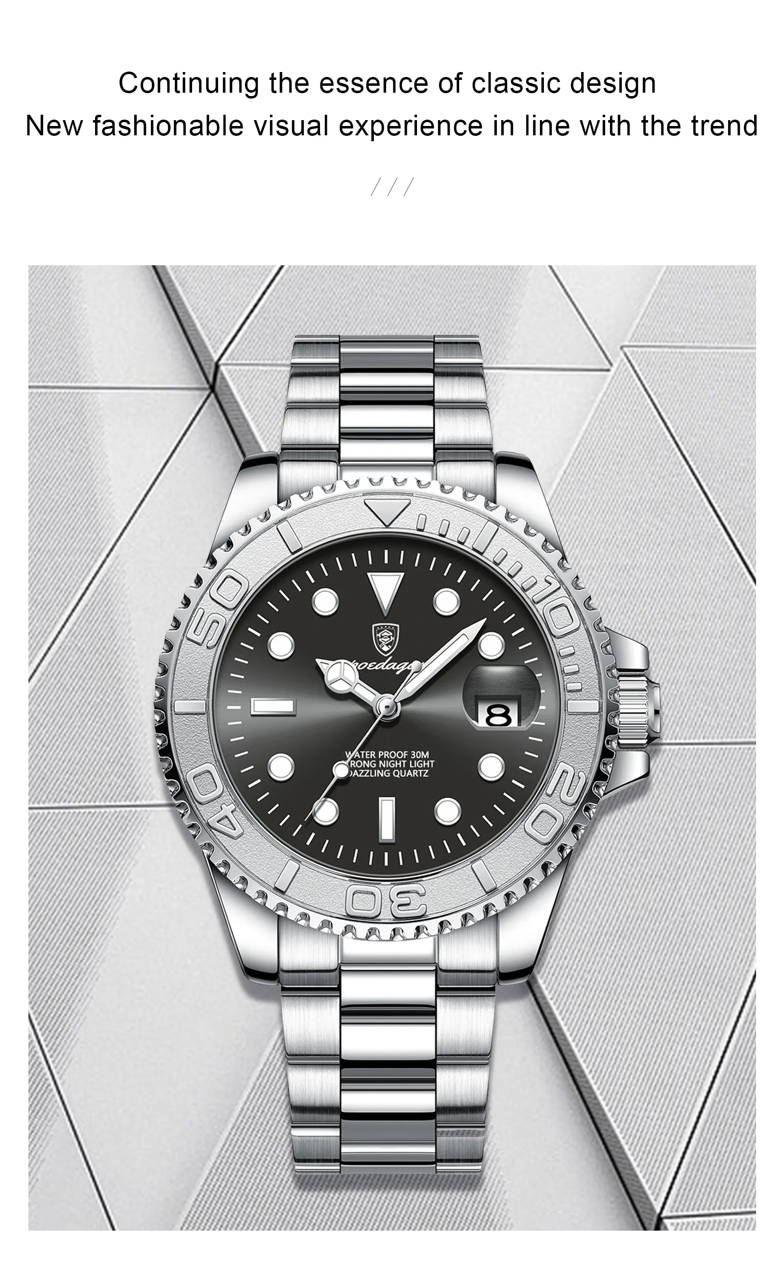 Montre POEDAGAR homme – Montre de luxe tendance en acier inoxydable, avec affichage de la date, étanche, lumineuse, style sportif. Montre à quartz.